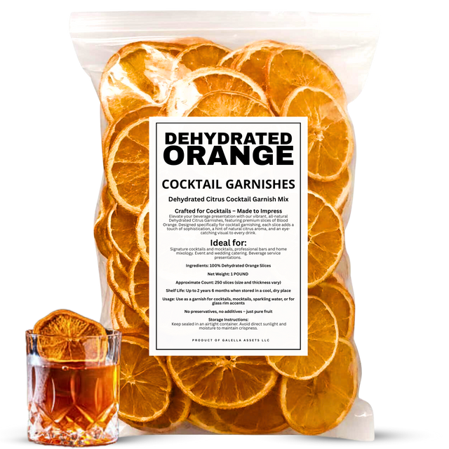 Sweet, bold, and visually stunning—our 1-pound bag of dehydrated orange slices is the signature touch your cocktails and culinary creations have been missing. Sourced from California Navel Oranges, each slice is hand-selected for color, symmetry, and seedless consistency, then slowly dried to preserve its vibrant hue, citrus aroma, and structural integrity.