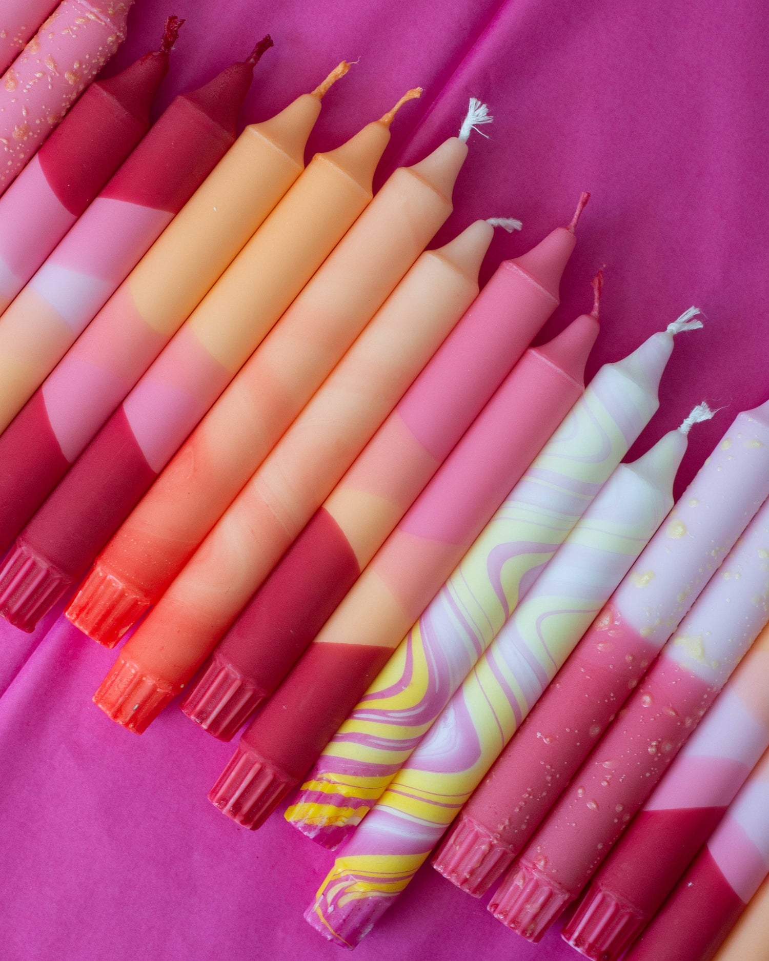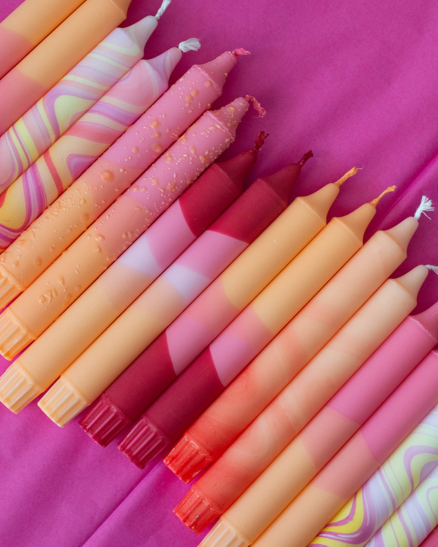 Originally hand decorated 20 cm high table candles in summer orange colours. Made and designed with Scandinavian style in Copenhagen, Denmark by Nordtrice Candles. Candles come as a mix presented on the pictures. Diameter in the bottom is 2.1 cm and made in standard size so it fits to all candle holders.